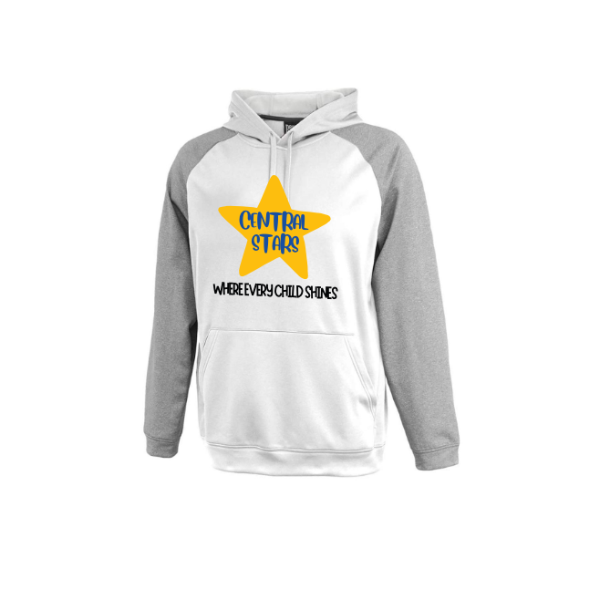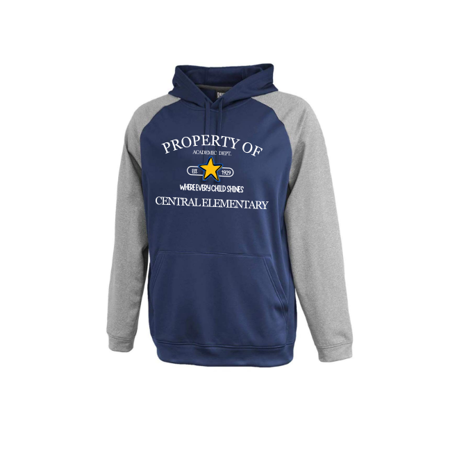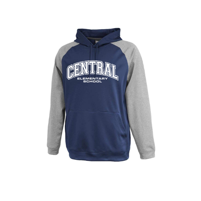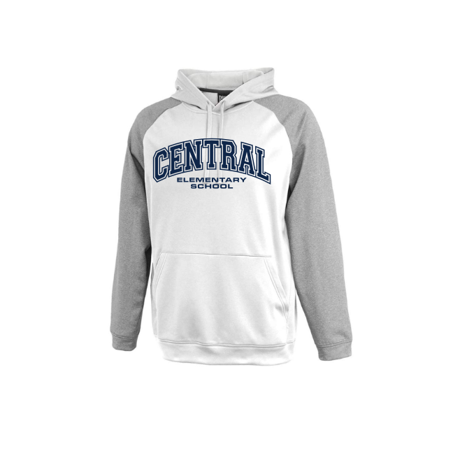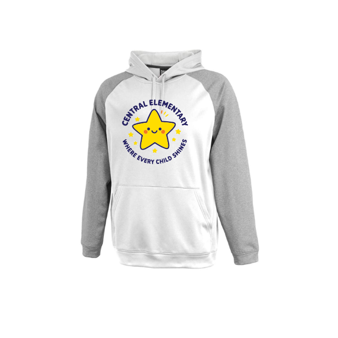 Premium polyester fleece Carbon heather raglan sleeve Solid body and hood Pouch pocket Screen printed design