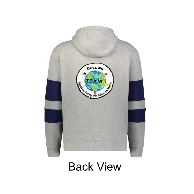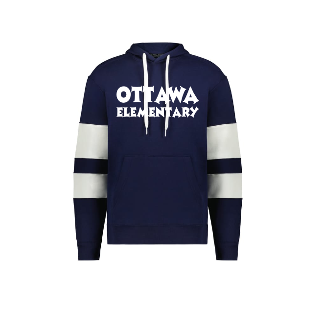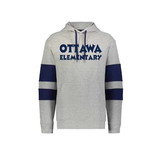 9-ounce, 60% cotton/40% polyester athletic fleece Hanger loop label 3 panel jersey lined hood with flat braid drawcord on Adult sizes only Set-in sleeves Front pouch kanga pocket Spandex blend rib-knit cuffs and bottom band Screen printed design