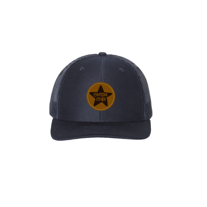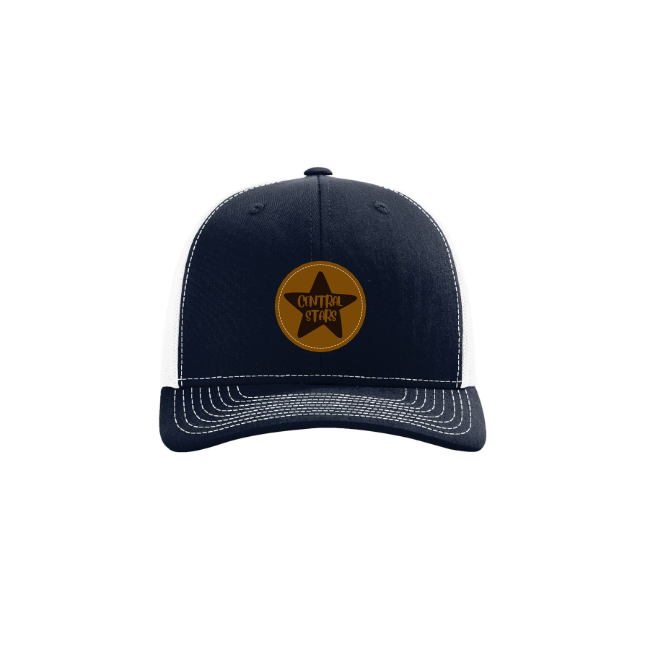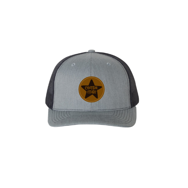 60/40 cotton/polyester 100% polyester mesh back Structured, six-panel, mid pro profile Pre-curved bill Adjustable plastic snapback Lasered leatherette patch stitched on