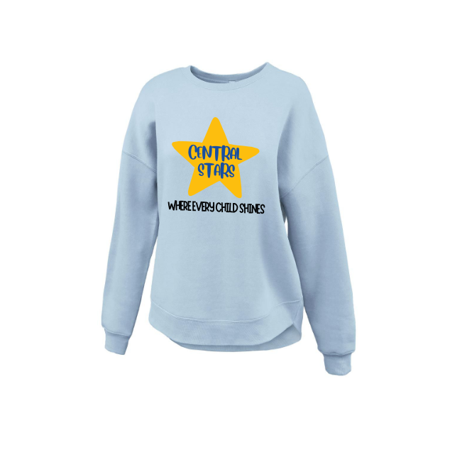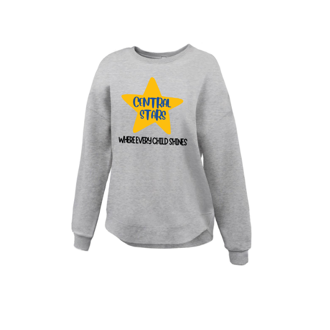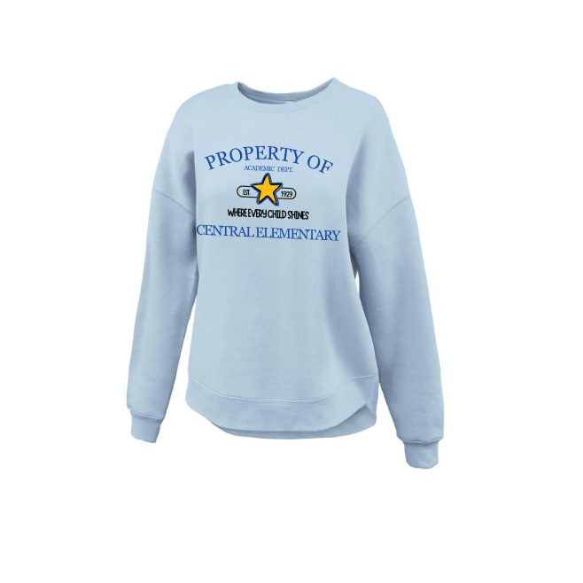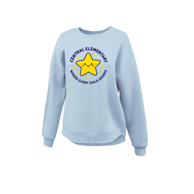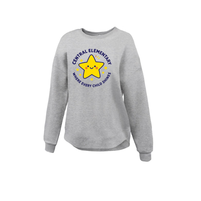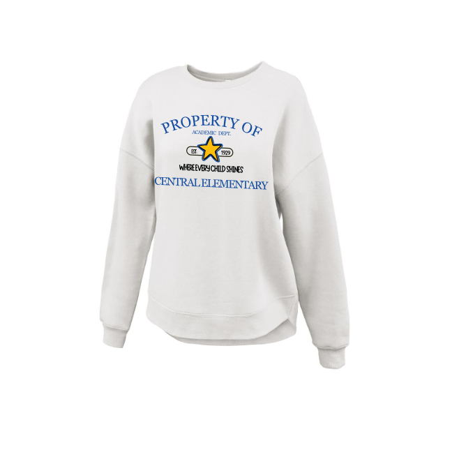 Soft, sponge fleece Curved bottom with longer back Drop shoulder Women's fit Rib waistband and cuff 60% cotton/ 40% poly Screen printed design