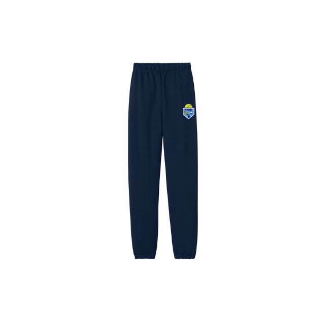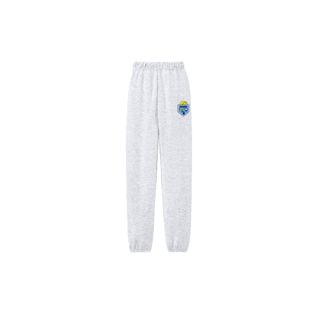 8-ounce, 50/50 cotton/polyester NuBlend® pill-resistant fleece  48/52 cotton/polyester (Oxford)  Made with sustainably sourced USA-grown cotton  High stitch density for a smooth printing surface  Double-needle stitched covered elastic waistband  No drawcord  Elastic cuffs with double-needle coverstitching  Tear-away label Screen printed design