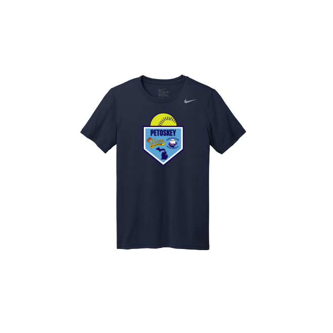 4-ounce, 100% recycled polyester jersey Neck tape for durability Heat-transfer label for tag-free comfort Contrast heat transfer Swoosh logo on left chest Rental-friendly Screen printed design