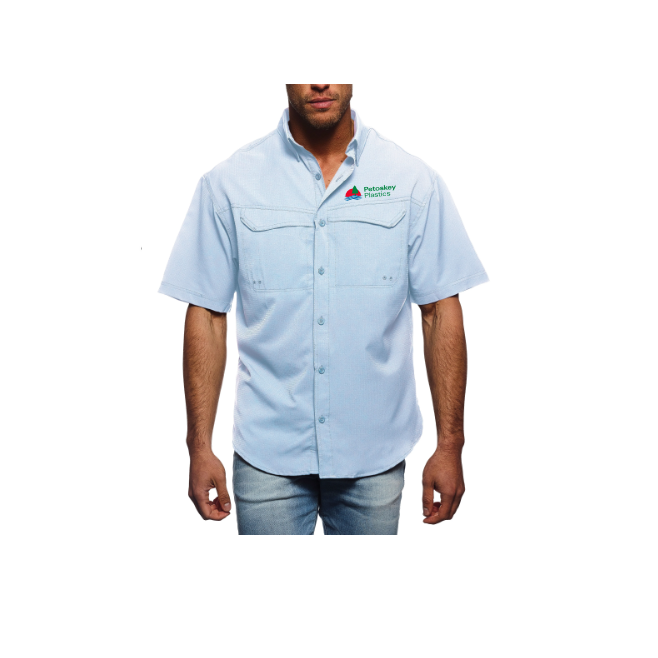 S-XL $28, XXL $29, 3XL $30 Fabric: 100% micro polyester 2.36oz. 40 UPF sun protection Machine wash Imported Embroidered logo Optional printed sleeve