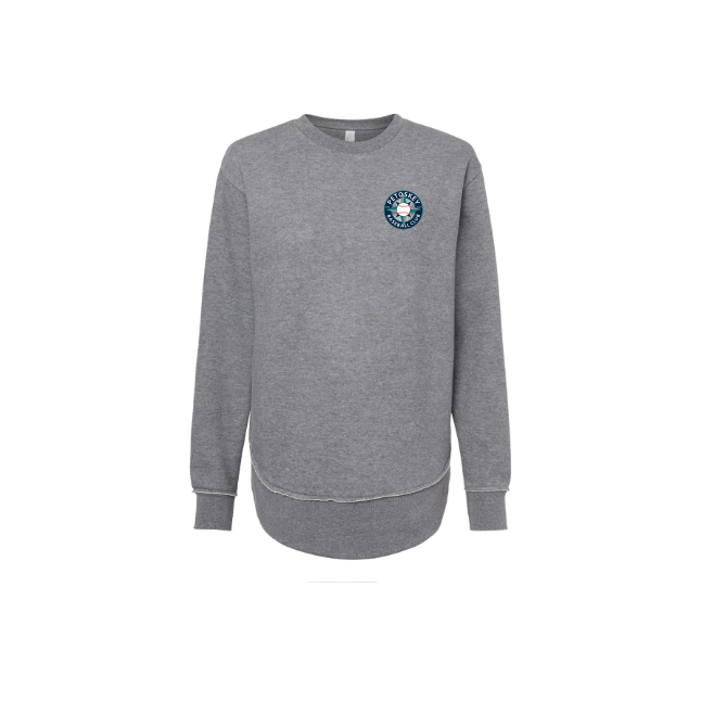 7.4 oz./yd², 60/40 combed ring-spun cotton/polyester Three-end fleece Relaxed, oversized fit Ribbed collar Drop-shoulder Ribbed, raw-edged hem and cuff Droptail Back locker patch EasyTear™ label Screen printed design
